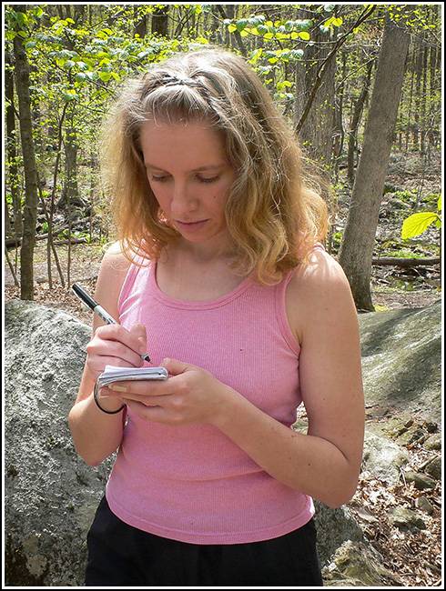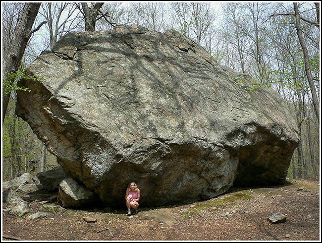 After Bear Rock, we hiked on to Tripod Rock, where I had noted in an email to Rich that we had looked for a different geocache (Tripod Rock) but we were unable to find it. Rich wrote: “I just took a look at it. The most recent cacher logs showed no real problems with finding it. I still don’t see how the hint was of any help to them. But one log mentions it being a clever hide.”